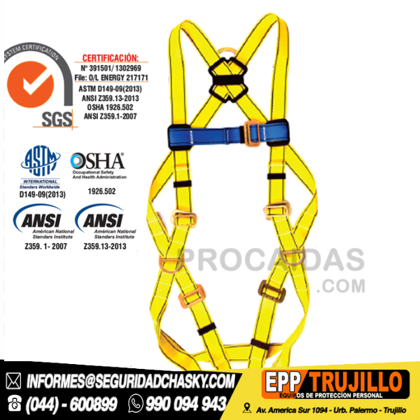 HomeProtección contra caídasArnes ARNÉS INTEGRAL DE 1 ANILLA Y 3 HEBILLAS COD: I1A3H