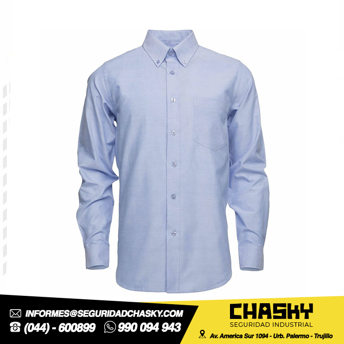 CAMISA OXFORD, DISPONIBLE EN TELA SAN JACINTO, CREDITEX (75% – 25% poliester) Y CREDITEX 100% alg.