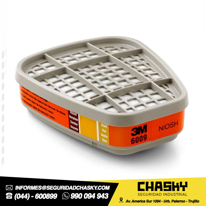 El 3M ™ Mercury Organic Vapor o cloro gas ácido Cartucho 6009S ayuda a proporcionar vapor de mercurio, cloro o dióxido de azufre y cierta protección en partículas en una variedad de entornos. El cartucho puede ser utilizado para las concentraciones de vapor de hasta 10 veces el límite de exposición permisible (PEL) con las caretas y medio o 50 veces PEL con caretas completas cuantitativamente la prueba de ajuste. Aplicaciones recomendadas para el cartucho incluyen transporte de productos químicos, laboratorios, y la apertura de la línea. Las necesidades de inventario y los requisitos de capacitación para el equipo de seguridad se reducen porque esta selección respirador de cartucho funciona para muchas aplicaciones diferentes. Este cartucho se utiliza comúnmente en los sectores de actividad siguientes:. Químicos, minería, petróleo y gas, productos farmacéuticos y metales primarios