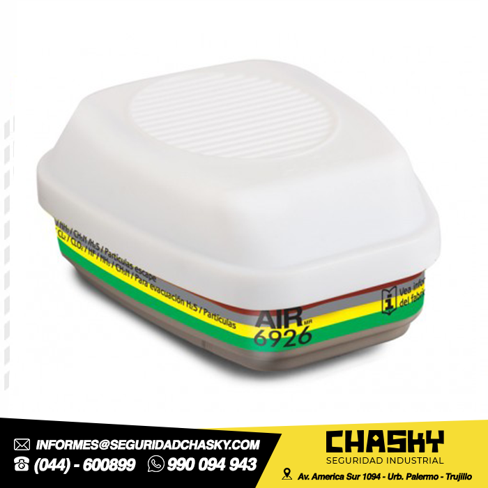 - Cartucho para gases ácidos, vapores orgánicos, amoniaco, metilamina, formaldehído y todo tipo de partículas.