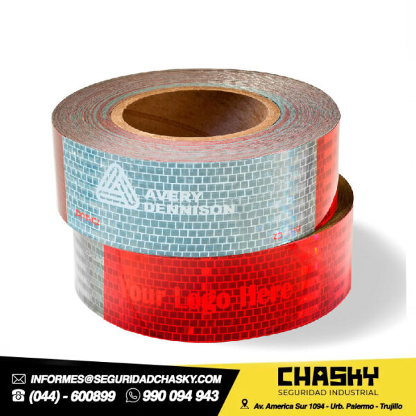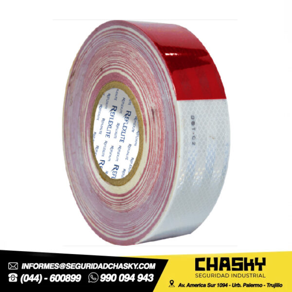 CINTA REFLECTIVA ROJO/BLANCO SELLADA CON LINEAS Y LOGO 5CM(2″) 45.7 MTS