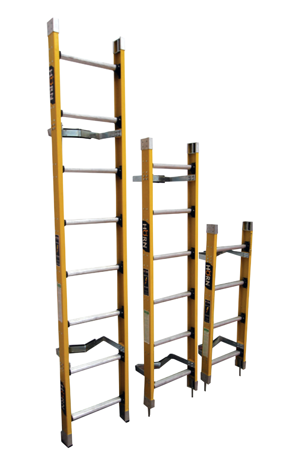 Las escaleras embonables Horn, son diseñadas para el trabajo sobre postes por medio del acoble de secciones sucesivas, paralelamente a lo largo del poste. Estas escaleras brindan alta seguridad, ya que se adosan de manera semipermanente a lo largo de la estructura de trabajo. Los rieles son elaborados en poliéster reforzado con fibra de vidrio, excelente material aislante. Los peldaños son elaborados en aluminio de alto impacto. los accesorios son elaborados en materiales de ingeniería para obtener el mejor desempeño.