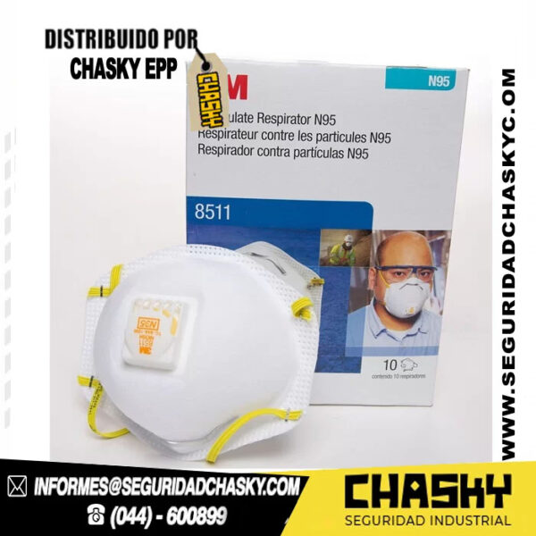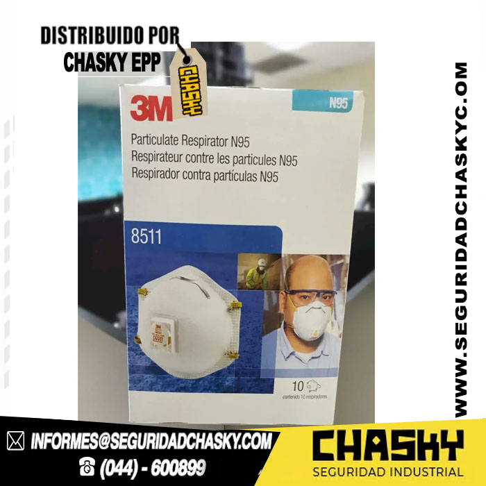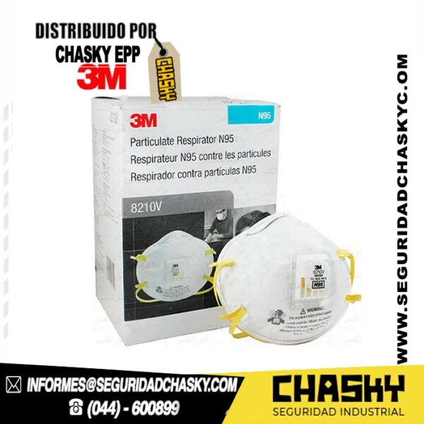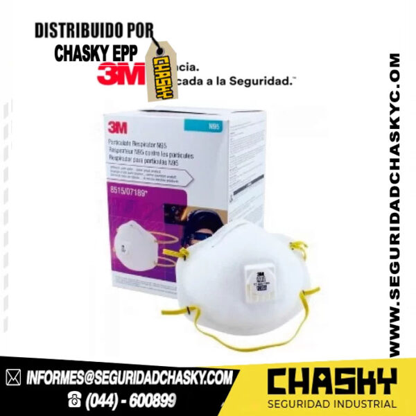 Respirador de libre mantenimiento N95 3M con válvula de exhalación patentada Cool Flow, con cintas elásticas, clip metálico ajustable a base de aluminio, y tela filtrante no tejida de polipropileno y poliéster.